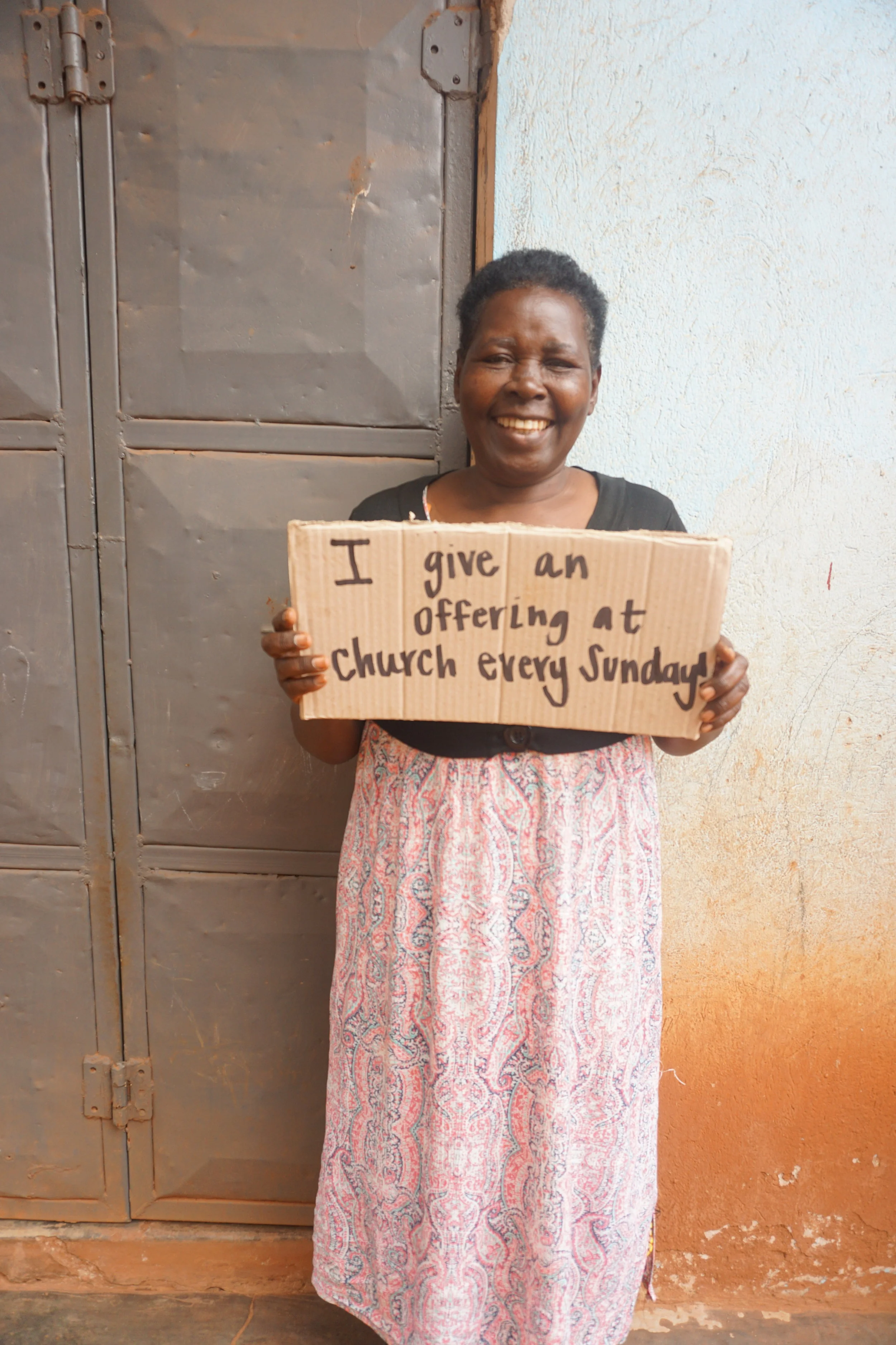She is very well respected in her church and has been asked to counsel some of the young women in the church. She received her own Bible last summer and she cried and praised God for the gift she had been given. She also opened up her first ever bank account. Your first bank account might have been opened under your name by your parents or with your first job as a teenager. Faith got her first bank account at the age of 65. Having a bank account in Uganda is a really big deal. It means you have a little to save and aren't just surviving. With what little money Faith is able to save she uses for her grandchildren and great grand baby.